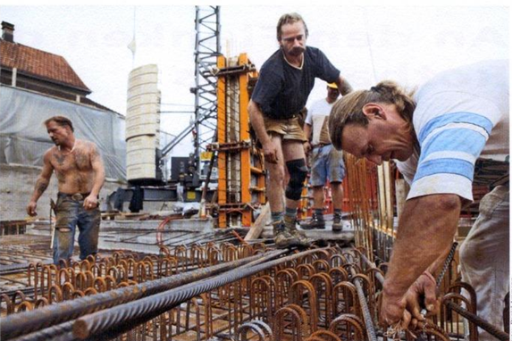 Bier der Eisenleger. Nur ärgerlich. Man muss warten. Adi, Sven, Maci, Harry und Jimmy hocken in der Beiz, denn es ist Mittag, und machen ihrem Ärger über die Verzögerung Luft. Es ist ein harter Job, Sommer wie Winter, und die Arbeitswege sind oft lang. Schifft es, ist es nicht recht, und brennt die Sonne, ist es auch nicht recht. Dummerweise gibt es hier nichts zu essen. Das hebt die Stimmung nicht gerade. Man hätte sich anmelden müssen, Eisenleger melden sich aber nicht an. Also begnügt man sich mit Bier und Zigaretten. Nur Jimmy macht sich hinter die Nussgipfel. Am Nachmittag soll es dann doch noch einigermassen gelaufen sein. Jedenfalls ist die Arbeit um fünf erledigt und es hat geklappt. Also gibt es keinen Grund, darüber Worte zu verlieren. Jetzt zieht man ab in Richtung St. Gallen beziehungsweise ins "Landhaus". Dort wollen wir uns zum Abschied treffen.