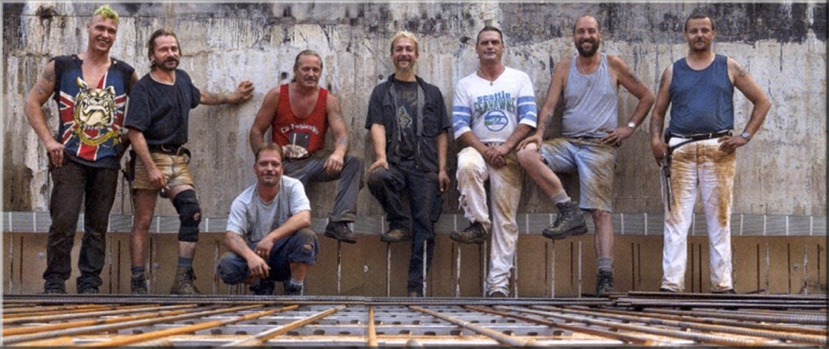 (Roland Wicklis Truppe auf einer Baustelle in Teufen)